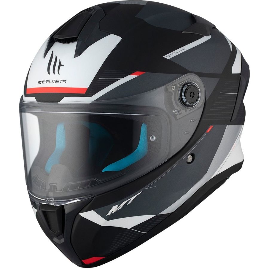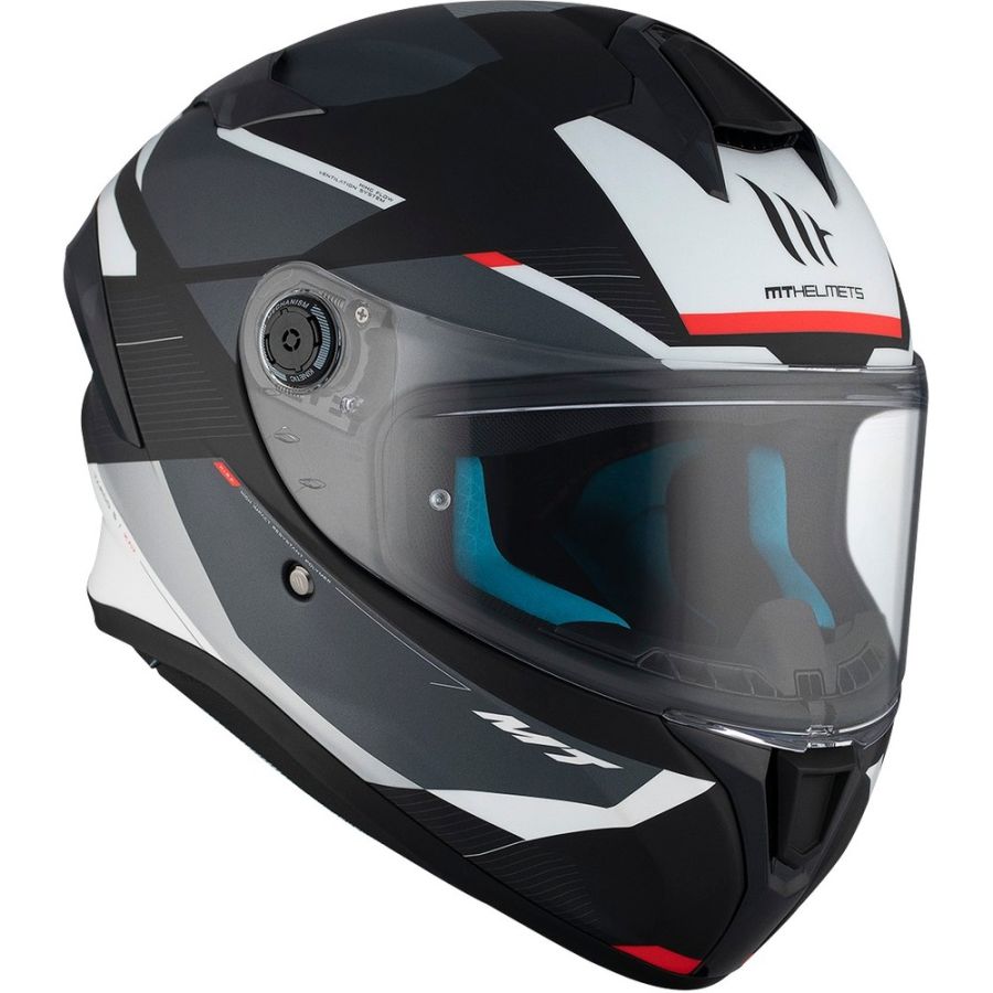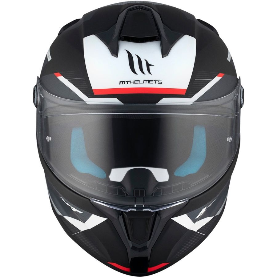 - FOGOFF® et Pinlock : Casque compatible avec les systèmes antibuée Pinlock et Fog-Off, un produit développé par MT qui améliore les niveaux de résistance à la buée.