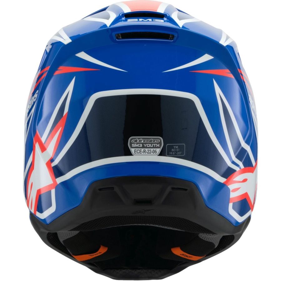 - NOUVELLE NORME DE SÉCURITÉ ALPINESTARS Alpinestars a introduit une nouvelle norme interne pour le SM3 Youth afin de tester le menton du casque dans des conditions plus difficiles que la norme d'homologation et afin de satisfaire aux nouvelles normes Alpinestars, à l'épaisseur de la coque et à la structure du casque. la conception elle-même a été optimisée au niveau du menton pour des performances d'impact supérieures.