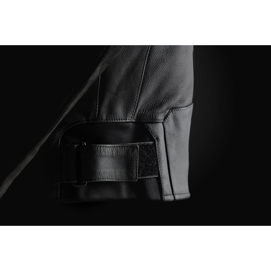 Le résultat est un blouson radical qui bénéficie des attributs de sa catégorie sans être trop exubérant : coques épaules, protections épaules et coudes D3O®, mix habile de cuirs et empiècements stretch pour un confort inégalé.
