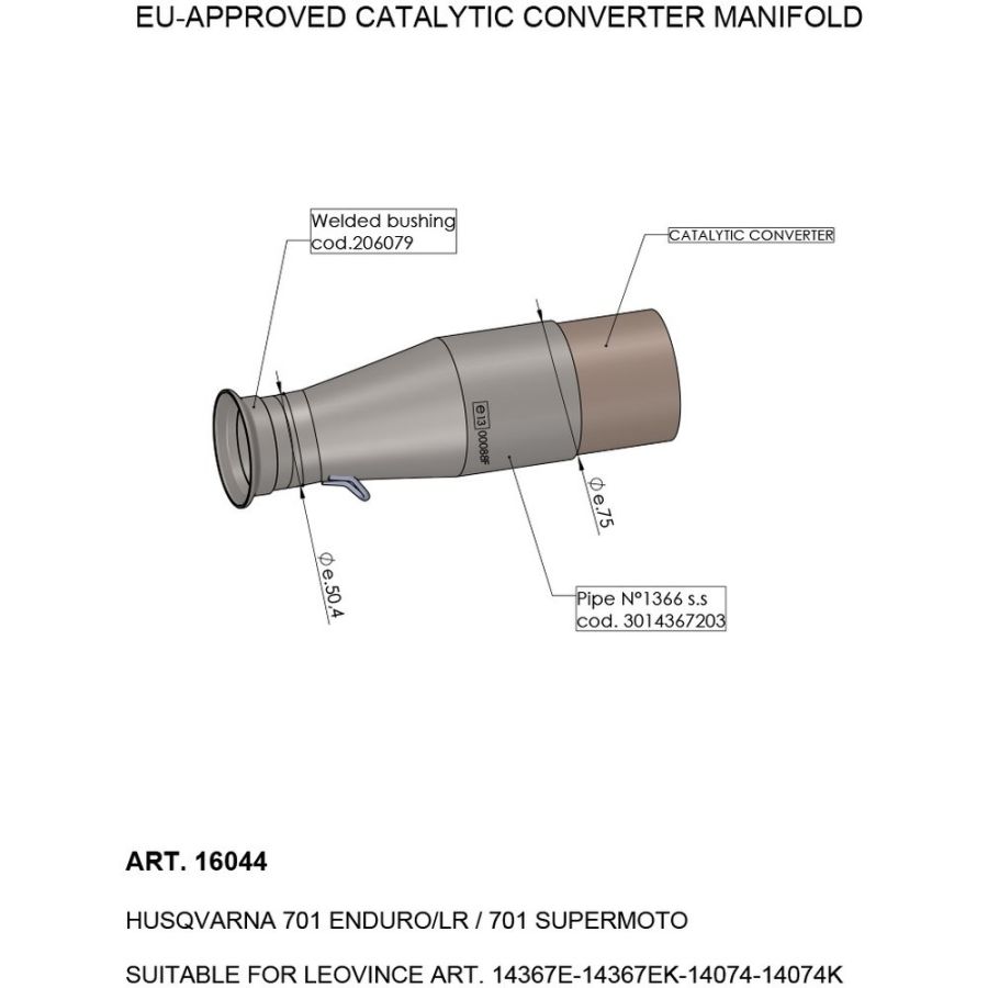 Moto Expert vous présente le MANCHON CATALYSÉ LEOVINCE Réfèrence : 16044 pour échappements LeoVince 14367E, 14367EK, 14074 et 14074K.